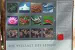 Thema: Ziel soll sein, das Thema Biodiversität in seiner Komplexität aufzuschlüsseln und für die Besucher des Zoos Frankfurt nachvollziehbar zu machen. Hierfür werden exemplarisch an drei Stationen die Aspekte "Vielfalt der Gene", "Vielfalt der Arten" und "Vielfalt der Lebensräume" mittels Bild- und Texttafeln sowie räumlichen und interaktiven Elementen dargestellt und anschaulich gemacht. Für die Station "Vielfalt der Gene" wurden in eine Nashorntransportkiste Gucklöcher eingelassen. Die Besucher können anhand einer Bildergeschichte einen Nashorntransport von Frankfurt nach Afrika nachvollziehen. Bild/Texttafeln informieren über die Notwendigkeit des Transports für die Erhaltung der genetischen Vielfalt in den afrikanischen Nashornpopulationen. Ein interaktives Element verdeutlicht das Motto "Vielfalt schafft Möglichkeiten" auf spielerische Weise.